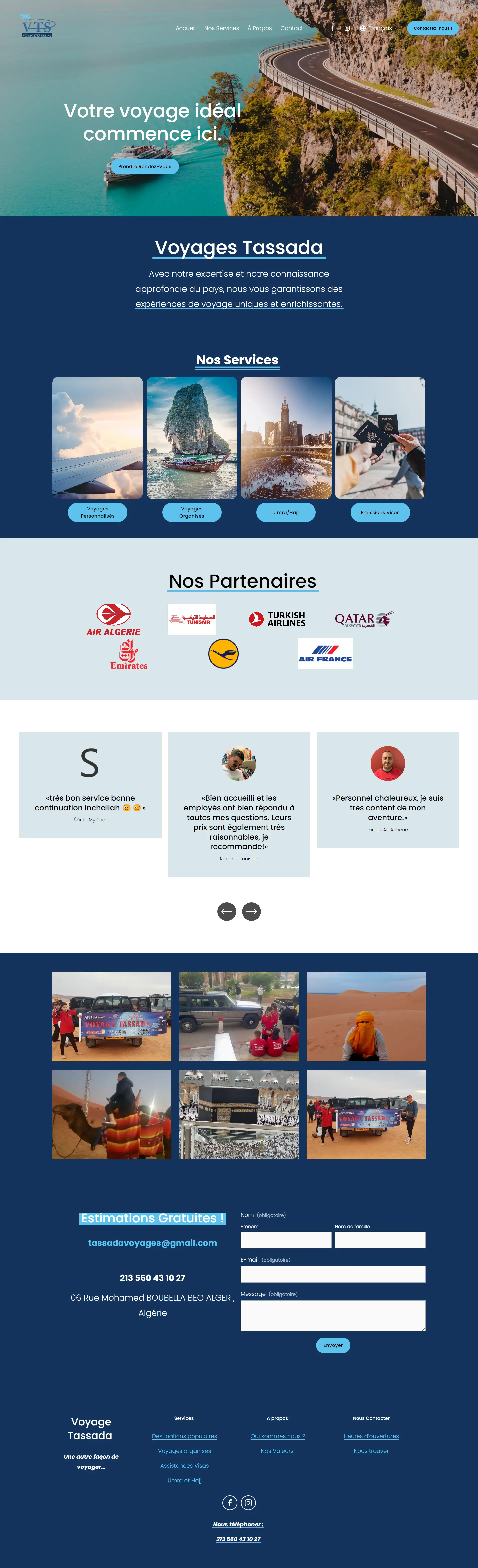 Voyages Tassada is a well-established travel agency based in Algeria, specializing in providing a wide range of travel services to its customers. With a mission to enhance the travel experience for both leisure and business travelers, Voyages Tassada recognized the need to create an online presence that could help them reach a wider audience and strenghten the credibility of their business.